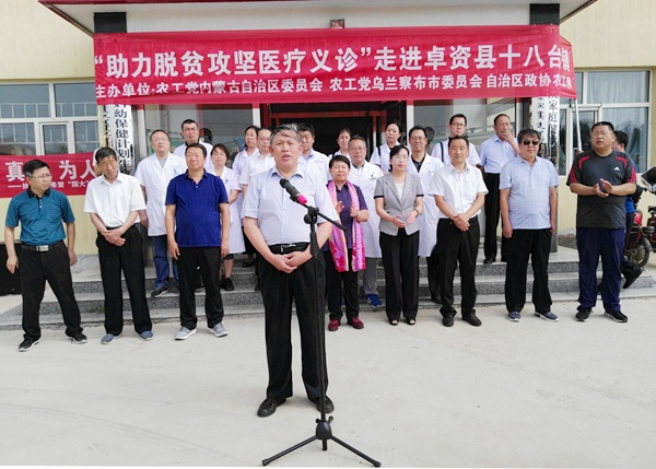 云治厚说,中国农工民主党是中国共产党领导的中国特色社会主义参政党,汇聚了许多医药卫生、人口资源和生态环境领域的高中级知识分子。农工党内蒙古区委会长期以来十分关注农村牧区,特别是贫困地区群众的就医问题。在习近平新时代中国特色社会主义思想的指引下,农工党内蒙古区委会把健康扶贫作为今年工作重点,深入全区各地调研,并积极组织专家为贫困群众进行义诊,开展送医送药活动,使贫困患者能够充分享受到优质的医疗服务,和全体人民一同奔小康。