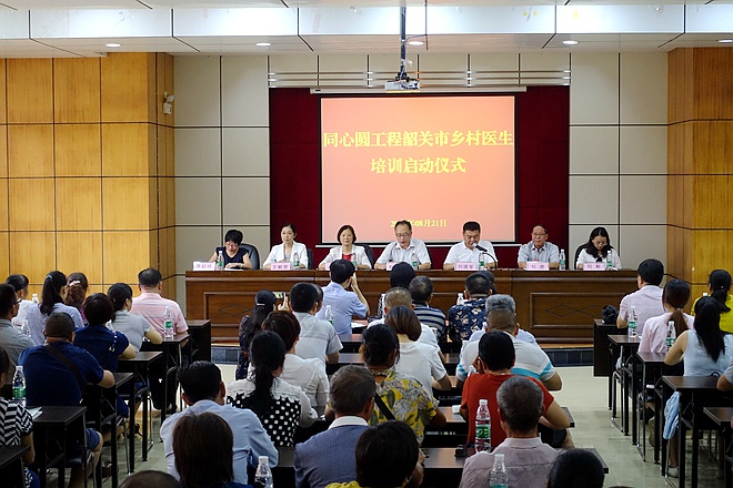 2018年8月21日,农工党广东省委会在韶关市武江区卫计局举行同心圆工程乡村医生培训班启动仪式,由广东省同心圆慈善基金会资助,对全韶关片区乡村医生进行新一轮培训。农工党广东省委会专职副主委刘启德、广东省同心圆慈善基金会秘书长刘勇、农工党韶关市委会主委卢春燕,韶关市卫计局副局长刘建军,韶关市武江区政府副区长王敏雯等有关单位领导出席了培训启动仪式。