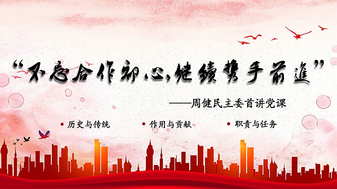 周健民从农工党的历史与传统、作用与贡献、职责与任务三个方面,用生动的故事、鲜活的事例,讲述了我党的光荣历史;展示了江苏农工党在参政议政大舞台上的作为、表现;阐述了新时代民主党派的新使命。