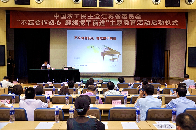 2018年8月17日下午,农工党江苏省委会“不忘合作初心,继续携手前进”主题教育活动在南京启动。江苏省政协副主席、农工党江苏省委会主委周健民出席并首讲党课。农工党江苏省委会副主委吴建坤主持启动仪式。