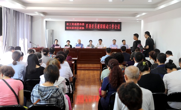 会议总结了一年来界别委员履职联动惠民服务情况。2017年7月至今,农工党黑龙江省委会、农工党哈尔滨市委会、哈尔滨市政协、南岗区政协部分界别委员共300余人次,积极参加界别委员履职联动服务群众活动。一年来,农工党黑龙江省委会、农工党哈尔滨市委会、哈尔滨西苑中医院以及荣市社区卫生服务中心共投入资金45.5万元,为社区居民免费筛选眼病、颈椎病等慢性疾病2800余例。界别委员为群众提供政策和法律咨询服务300余人次。