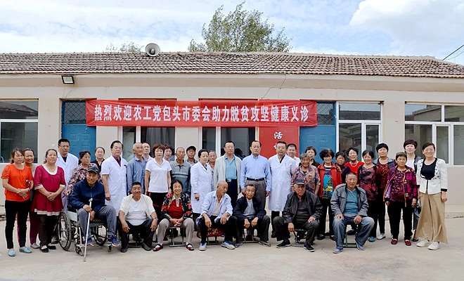 2018年9月5日,农工党包头市委会组织党员专家赴包头市九原区白音席勒街道前营子村开展助力脱贫攻坚健康义诊活动。包头市政协副主席周志宁、副秘书长李海燕,农工党包头市委副主委辛华、严长宏及部分市政协委员、农工党东河区三支部党员参加活动。