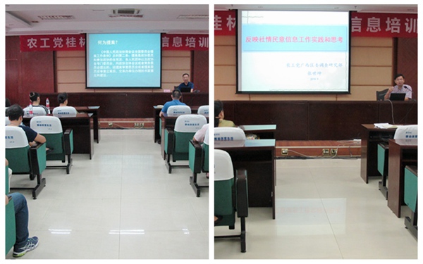 周长山和农工党广西区委会调研部副调研员张世坤分别给大家做了题为《怎样写一份好提案》和《反映社情民意信息工作实践与思考》的精彩授课。他们详细讲解了提案与社情民意信息的写作、采编技巧和常见问题,并列举了大量的案例,对提升桂林市党员写作提案与信息工作水平具有很强的指导作用。