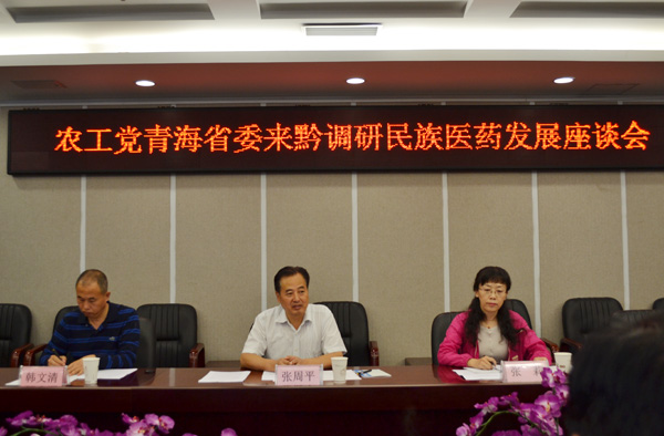 9月14日上午,调研组与农工党贵州省委会共同召开了座谈会,会议由农工党贵州省委会专职副主委黄惠玲主持,贵州省中药管理局、发改委社会发展处、食药监局药品化妆品注册管理处、科技厅、中医药大学、民宗委等相关领导和专家分别介绍了贵州省民族医药典籍保护和传统诊疗技术传承、民族医药产业化发展及政策扶持力度、药材种植与大健康产业融合发展、科研投入和研发平台建设、民族医药服务体系和队伍建设等有关工作开展情况,调研组与参会领导围绕民族医药保护和传承、诊疗技术标准制定、大健康产业发展、民族医药发展工作机制建设等工作中存在的问题和瓶颈进行了深入的交流。张周平主委指出,目前民族医药保护与发展机制主要在省垣范围内,缺乏推动各省民族医药共同发展的联合力量,他建议充分发挥农工党在医药卫生界的优势作用,加深少数民族省份各有关方面的合作,为促进民族医药事业发展出谋划策。