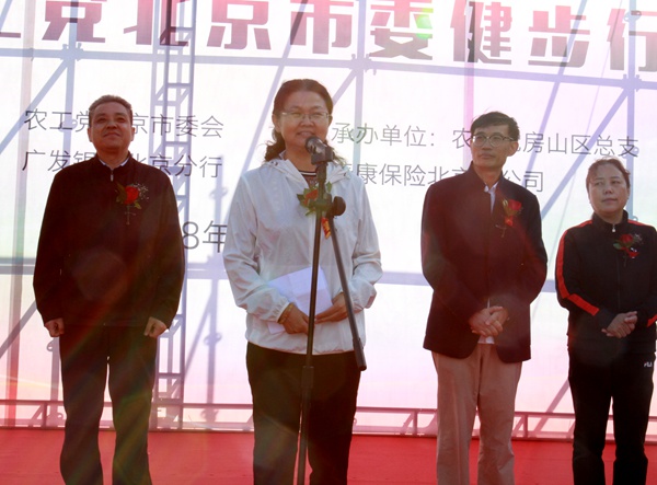 2018年9月29日上午,农工党北京市委会在房山区长阳公园举办“不忘合作初心 继续携手前进”健步行活动。本次活动由农工党中央文体专委会、农工党北京市委会主办,农工党北京市委会专职副主委李亚兰,农工党中央文化体育专委会副主任夏冰,中共北京市房山区委常委、统战部部长唐海蛟等出席活动,农工党北京市委会秘书长江欣主持活动。