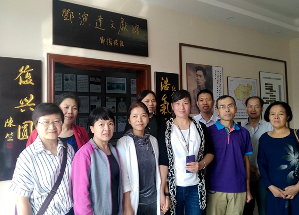 当天上午,参加活动的党员观看了邓演达烈士视频,冯家三烈士亲属代表作题为《冯家三烈士与农工党》的发言。冯硕仁烈士后代于云说:80年前,她的先辈和农工党早期组织就有过合作,并在樊氏图书馆的前身——樊家书屋留下革命活动的足迹。冯家三兄妹是1928年在东海县加入中国共产党的早期党员。土地革命时期,冯硕仁曾任中共白塔区委书记、东海行委委员等职,冯菊芬在共青团中央工作,冯永仁是中共在上海的地下区长。这里是当年革命活动的地方,已经成为革命遗址和纪念设施,一件件带着历史印记的红色藏品,正在无声地诉说着那段峥嵘的岁月。来自连云港市妇保院总支部委员会和淮工支部的农工党党员分别朗诵了邓演达烈士的诗、《我们的信条》,以及《一个革命者的价值》等文章。参观了邓演达文献馆展厅。活动中,祖籍东海的新疆军垦诗人张明通过微信发来即兴诗作《写给烈士纪念日》:烈士牺牲了,国家纪念他。英魂得慰藉,后代更风发。