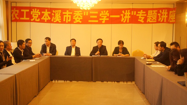 参观结束后,本溪市委会组织召开了“三学一讲”专题讲座。市委会专职副主委安青主持会议并传达了《农工党辽宁省委开展“不忘合作初心 继续携手前进”主题教育活动2018-2022年工作规划》和《农工党辽宁省委开展“不忘合作初心 继续携手前进”主题教育活动2018年工作方案》。主委李荣文为党员们讲党课,和党员们共同回顾了农工党成立88年来的光辉历程。最后,原本溪市筹委会主委安忠贤讲述从2006年成为本溪市首位农工党党员到如今本溪市委会成立3周年,这十二年来本溪农工党的发展历程。