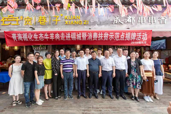 2019年9月11日下午,无锡市梁溪区南长街宽巷子串串店,“青海循化生态牛羊肉走进锡城暨消费扶贫示范点”揭牌仪式在此举行。海东市人大常委会副主任、循化县委书记李发荣,无锡市梁溪区区委书记秦咏薪共同为消费扶贫示范点揭牌。农工党党员、无锡宽窄巷子餐饮董事长卢兴亮发言并与循化县农业企业签订了72万元线辣椒采购协议。梁溪区副区长、农工党区基层委员会主委张琦主持仪式。