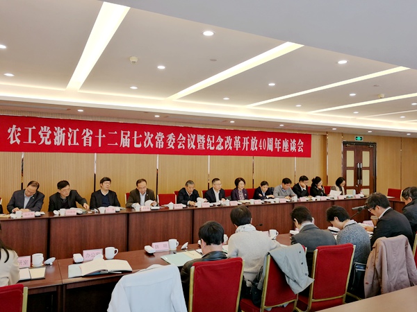2018年11月13日,农工党浙江省十二届七次常委会议暨纪念改革开放40周年座谈会在杭召开。省委会主委罗建红主持会议,副主委田野、周智林、陈为能、葛明华、丁列明、徐志康等出席会议。