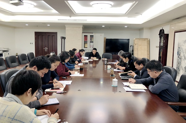 2018年11月16日上午,农工党山东省委会在机关会议室召开理论学习中心组学习会议,传达学习了中共山东省委统战部《在党外知识分子中深入开展“弘扬爱国奋斗精神、建功立业新时代”活动的实施方案》。省委会主委段青英主持会议并讲话,副主委吕善勇、王军,秘书长付军参加学习。