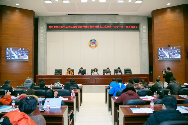 2018年11月16日,学习贯彻习近平总书记重要讲话和重要指示精神暨农工党齐齐哈尔市委会“三学一讲”党员培训会在市党政办公中心3号楼1楼政协常委会议室召开。市委会主委戴晓霞,市委会副主委郑永杰、李继伟、宫洪江出席会议,市委会副主委兼秘书长陈曦主持会议。