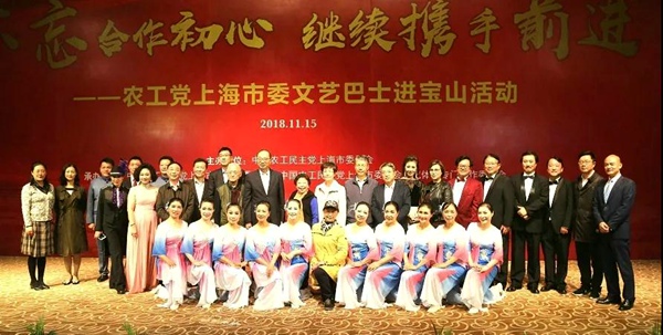 2018年11月15日,为纪念宝山区“撤二建一”三十周年、农工党宝山区委会成立三十周年,庆祝改革开放40周年,认真开展“不忘合作初心,继续携手前进”主题教育活动,农工党上海市委会文艺巴士进宝山活动在上海市宝山区上影国际影城隆重举行。