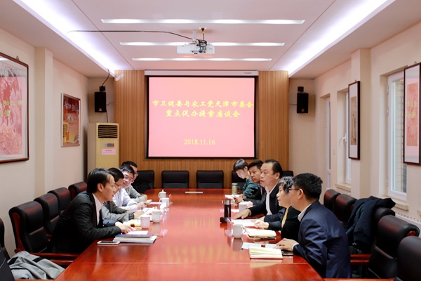 2018年11月16日下午,天津市卫生健康委员会副主任雷平、市政府办公厅建议提案工作处副处长王浩鹏带队到农工党天津市委会走访座谈,就市委会提交市政协十四届一次会议的市政府重点提案“加快推进我市卫生信息化建设(提案023号)”通报办理落实情况。市委会专职副主委兼秘书长王毅斋接待雷平一行并主持座谈会。