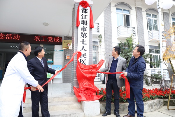下午,农工党成都市委会与都江堰市人民政府在沿江卫生院共同为沿江卫生院升级为都江堰市第七人民医院揭牌。农工党成都市委会主委甘华田、副主委池雷霆、魏彦玉、胡伟峰,秘书长曾琪。都江堰市人民政府副市长袁明,中共都江堰市委统战部副部长程国忠,都江堰市卫计局局长廖鹏等出席活动。活动由胡伟峰副主委主持。