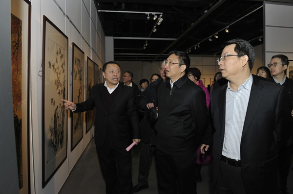 开幕式结束后,各位领导、嘉宾和党员代表参观了艺术作品展,大家对展览给予了高度评价,部分艺术家还在现场进行了书画笔会交流。