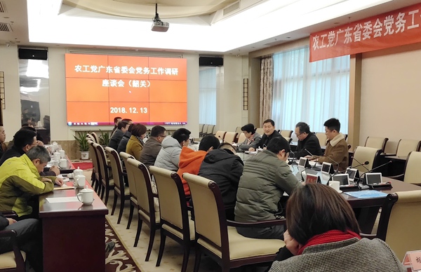2018年12月13日至14日,农工党广东省委会主委马光瑜、专职副主委刘启德一行前往韶关市、清远市委会调研党务工作,看望慰问两市农工党党员,深入了解农工党组织自身建设和组织发展情况,认真听取基层组织和广大党员对省委会工作的意见建议。