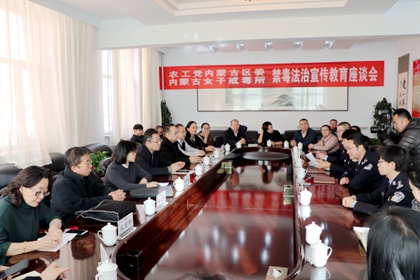 随后,在自治区女子戒毒所办公区会议室召开了以“禁毒法治宣传教育”为主题的座谈会。自治区女子戒毒所党委委员、纪委书记贾建田主持座谈会。李建所长介绍了推进统一戒毒工作模式和科学戒治、文化建设的情况。肖杰副所长通报了当前我区禁毒工作形势、场所女性戒毒工作开展情况。参会的专家学者分别结合自己的专业从戒毒医疗、康复医学、疾病预防、心理咨询以及文化建设等方面进行交流、提出建议。