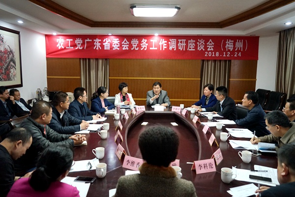 2018年12月24日至25日,农工党广东省委会主委马光瑜等一行到梅州市委会调研党务工作,了解农工党组织自身建设、履职尽责情况,看望慰问老党员。梅州市委常委、宣传部部长陈晓建,市委统战部相关领导参与交流或陪同调研。