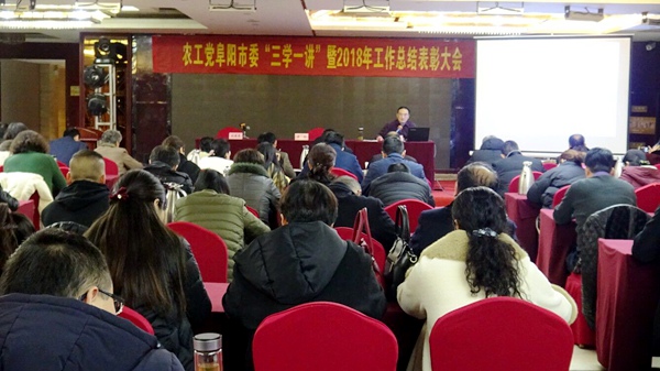 2018年12月25日,农工党阜阳市委会开展“三学一讲”暨2018年度工作总结表彰大会。农工党安徽省委会副主委、农工党阜阳市委会主委黄珍出席大会。农工党阜阳市委会副主委刘建东主持会议。