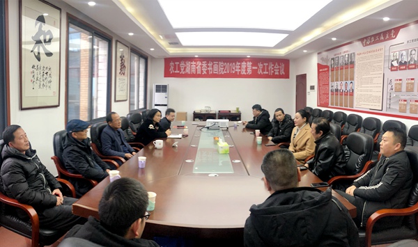 2019年1月14日下午,农工党湖南省委会书画院召开2019年度第一次工作会议,研究了书画院2019年的工作计划。省委会专职副主委蒋秋桃,副主委、省农业农村厅副厅长兰定国出席会议并讲话,书画院主任童治军、副主任杨正良、黄鹤庚以及书画院的委员参加了会议。