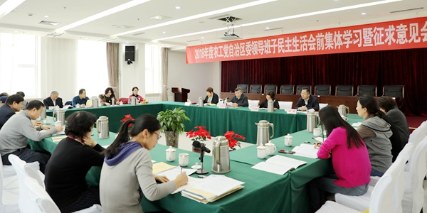 2019年1月17日下午,农工党内蒙古区委会召开2018年度领导班子民主生活会前集体学习暨征求意见会,农工党内蒙古区委会主委云治厚主持会议并讲话。农工党内蒙古区委会专职副主委王学东,副主委闫敏、蓝峰参加会议并就学习体会作交流发言。