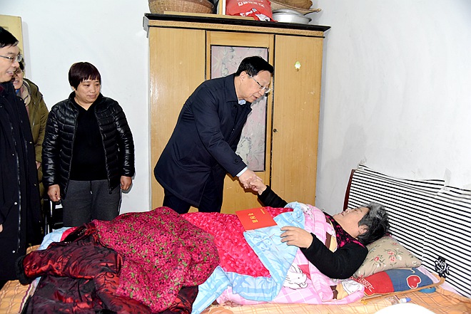 28日下午,高体健一行走访慰问2名省级劳动模范和17名困难退伍军人。为他们送去慰问金和慰问品,并详细询问他们的家庭、生活、身体状况,向大家拜早年,嘱托县委刘永国书记要多关心他们的生活和健康情况,主动提供服务。随后,到县和平制动器厂送去慰问金3万元,到小店乡敬老院看望慰问孤寡老人,为他们带去空调、洗衣机、猪肉、羊肉、大米、食用油等总价值1万元的慰问品和慰问金1万元。最后,深入小店乡山底村,亲切看望慰问贫困户和扶贫一线干部、老党员、军烈属,他勉励驻村工作队员和扶贫干部要开展精准帮扶、真情帮扶,着力提高脱贫质量,巩固脱贫成果,减少和防止返贫,确保实现“两不愁、三保障”,确保贫困群众持续增收稳定脱贫,确保高质量打赢脱贫攻坚战。