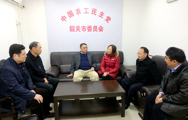 同日,中共韶关市委常委、统战部部长颜珂在市委统战部常务副部长孔庆红、副部长廖雨婷等的陪同下来到农工党韶关市委会机关开展走访慰问活动,与机关干部亲切交谈,并致以新春美好祝福。
