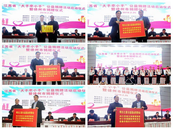实施乡村振兴,教育不能缺位。2019年2月25日上午,农工党江苏省委会暨明日之星公益基金管委会“大手牵小手”教育精准扶贫捐赠仪式,在徐州市沛县初级中学举行。此次公益捐赠活动拟向江苏省60个县(市、区)的义务教育阶段学校,捐赠价值2400万元教育信息化设备。