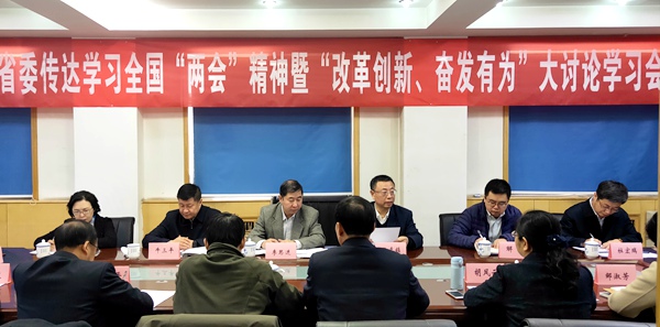 2019年3月16日上午,农工党山西省委会在机关会议室召开传达学习全国两会精神暨“改革创新、奋发有为”大讨论学习会。农工党山西省委会主委、山西医科大学校长李思进,副主委张李锁、牛三平、解军、张锦、杜宏瑞出席会议。会议由张李锁主持。