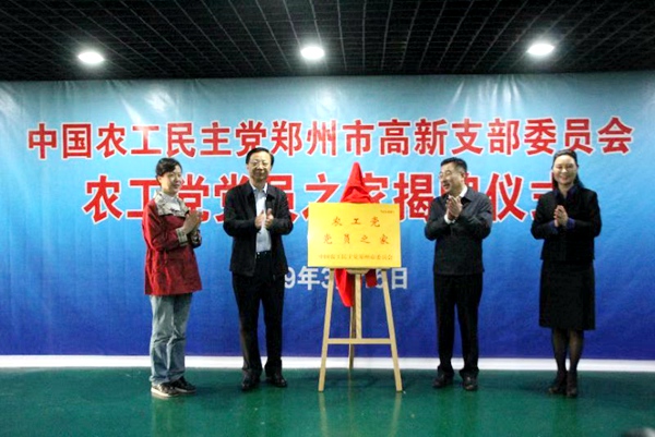 2019年3月16日,郑州市首个“农工党党员之家”揭牌仪式在农工党高新支部举行。河南省政协副主席,农工党河南省委会主委高体健,农工党河南省委会专职副主委花亚伟,农工党河南省委会副主委、郑州市委会主委李新有,农工党中央组织部地方组织处负责人,中共郑州市委统战部副部长王丽、中共高新区党工委书记,管委会主任王新亭等参加揭牌仪式。