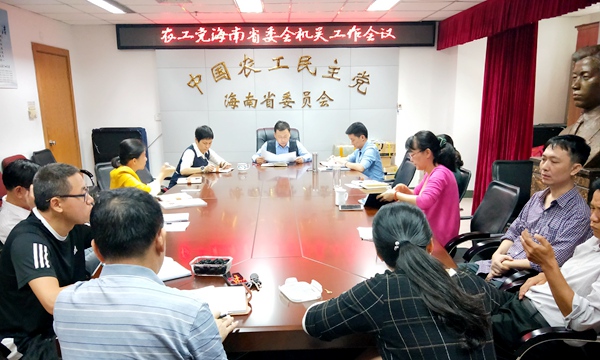 2019年3月18日上午,农工党海南省委会召开机关会议,专题学习“传达全国两会精神电视电话会议”精神。省委会专职副主委毕华主持学习。