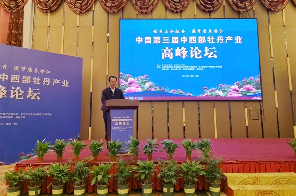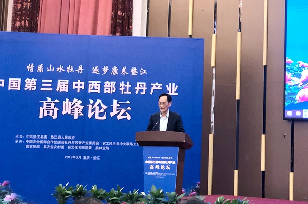 杜黎明发表讲话,他强调:“打造全域旅游新经济的牡丹品牌,要积极发展牡丹产业链,促进垫江牡丹从单一观赏价值到全面利用的衍生价值。”