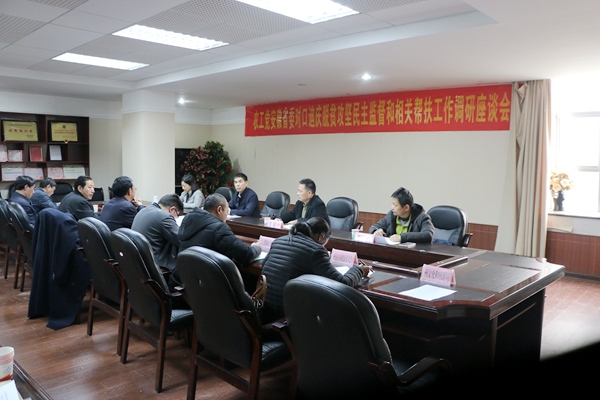 4月2日上午,农工党安徽省委会对口迪庆州脱贫攻坚民主监督工作调研座谈会在州委召开,州统战部副部长王国华主持会议,州组织部、人社局、扶贫办以及教育、卫生、文化等相关部门负责人参加了会议。会上,李松其首先介绍了此次调研的背景、目的和意义,迪庆州各参会单位主要就人才专题作了全面的交流发言,郭崇先在最后的讲话中指出,农工党安徽省委会用心、用情、用力开展对口迪庆脱贫攻坚民主监督工作,真正体现出了民主监督的成效,各相关单位将全力支持配合做好此次调研工作。
