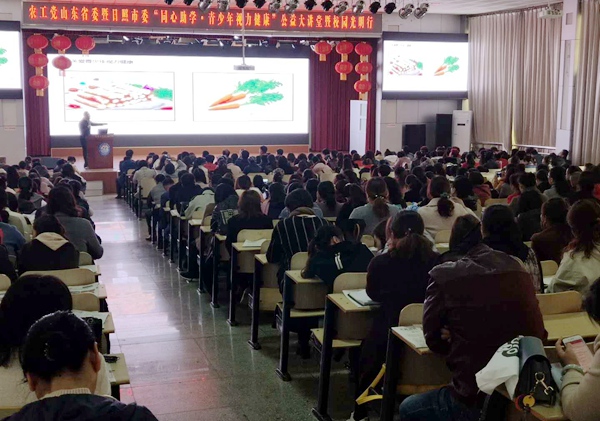 同心助学志愿者心理学应用咨询师潘成海、费县光明眼科医院副院长朱凤梅两位专家进行视力健康讲座,讲座以大量的数据、鲜活的图片向公众展示了目前孩子用眼健康面临的严峻形势、不良用眼习惯的危害、以及科学用眼应该注意的问题,受到了老师和家长们的热烈欢迎。东港区教育局领导及全区初中、小学、幼儿园分管领导、教师及家长代表共计600余人参加了讲座。下午,费县光明眼科医院的专家志愿者为300余名近视学生进行了眼科疾病筛查、视力检查和体验。