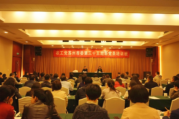 2019年4月14日至15日,农工党苏州市委会举办第三十五期新党员培训班,培训班由苏州市社会主义学院副院长、农工党苏州市委会副主委兼秘书长张健红主持,苏州市政协副主席、农工党苏州市委会主委周俊出席并讲话。