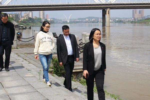 4月16日上午,调研组成员与邵阳市水文局、农业农村局、林业局、工信局、水利局等部门负责人召开了座谈会,就资江邵阳段生态环境现状、保护力度、经济发展等进行了沟通交流。同时实地考察了邵阳市区内资江沿岸的水质及排污问题。