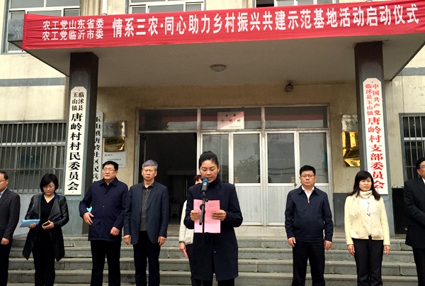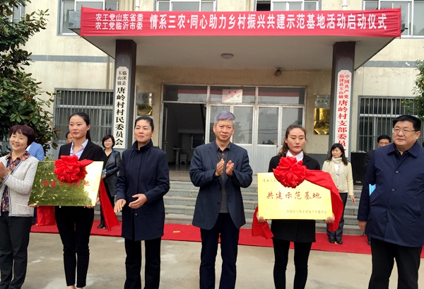 2019年4月30日,农工党山东省委会“情系三农·同心助力乡村振兴”共建示范基地启动仪式在临沂市临沭县唐岭社区举行。农工党山东省委会、农工党临沂市委会,省派临沭县玉山镇乡村振兴服务队,农工党山东省委会农业委、生物药学委、经济委和农工党山东省委会助力乡村振兴的志愿者、专家们汇聚一堂,共同见证乡村振兴示范基地启动。这是农工党山东省委会在全省建立的第二家“情系三农·同心助力乡村振兴共建示范基地”。