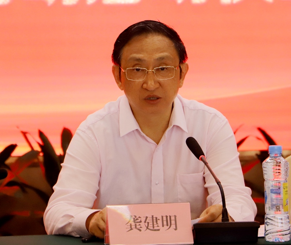 龚建明对农工党江西省委会换届以来,在全省组织中深入开展“不忘合作初心,继续携手前进”主题教育活动和“五学一讲一创一做”专题教育活动所取得的成绩给予充分肯定。他指出,做好2019年度主题教育活动,一是要坚持鲜明的目标导向,把深入学习贯彻习近平新时代中国特色社会主义思想作为首要政治任务,把全面加强自身建设作为开展主题教育活动的出发点和落脚点,把切实提高履职实效作为检验主题教育活动成效的重要标准;二是要全面贯彻落实农工党“政治建党、履职兴党、人才强党、作风固党”四大战略,把加强思想政治建设摆在首要位置,进一步加强政治引领、思想引导、共识教育,积极发挥领导班子示范带动作用,以实际行动团结和带动广大党员不断增强思想政治共识;三是要准确领会主题教育活动的时代内涵,把今年主题教育活动的网络云课堂学习教育培训等十项工作与加强自身建设、提高履职能力紧密结合。他希望江西省委会围绕“加强自身建设,提高履职能力”这个年度专题,结合自身实际,积极开展十项工作,取得实实在在的效果。
