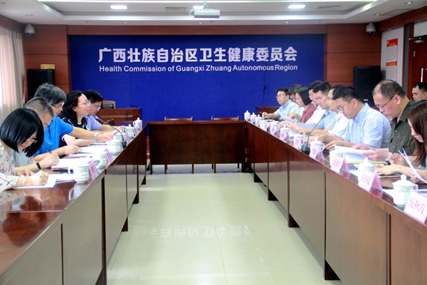 上午,调研组和自治区卫生健康委进行了座谈。自治区卫生健康委、广西医科大学、自治区妇幼保健院、自治区人民医院等单位围绕各自工作职能,总结了近年来地中海贫血防治工作情况,并对推广广西地中海贫血防治工作提出了建议意见。