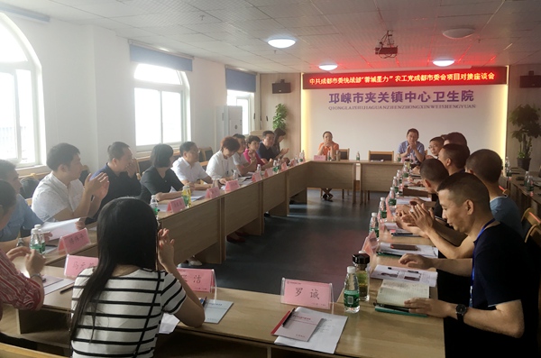 夹关镇党委书记卿袁江、邛崃市卫健局副局长孔世忠等参加座谈。(农工党成都市委会宣传处)
