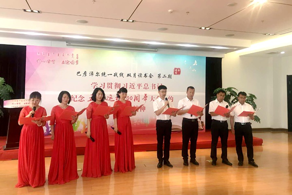 2019年5月29日,中共巴彦淖尔市委统战部举办了巴彦淖尔统一战线第二期“同心学习·立德圆梦”双月读书会,深入学习贯彻习近平新时代中国特色社会主义思想和中共十九大精神。农工党巴彦淖尔市委会高度重视、细致谋划,根据党员工作特点和实际,抽调8名党员,利用双休日时间精心编排了《传承“五四”精神,开启新的征程》配乐诗朗诵节目参加活动,得到了参会人员的一致好评。(农工党巴彦淖尔市委会)