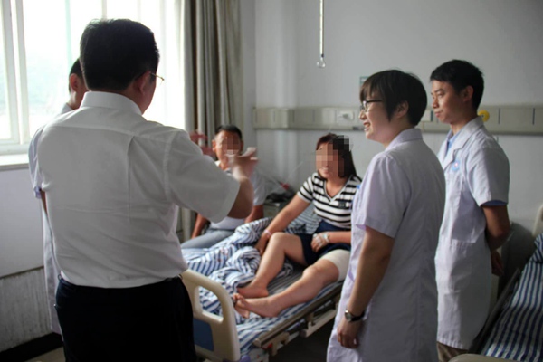林俊(右二)在地震发生后第一时间奔赴灾区,积极开展灾区群众心理危机干预工作