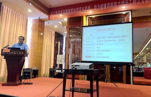 培训期间,湖南省政协副主席、农工党湖南省委会主委张灼华,省委会专职副主委蒋秋桃到培训现场看望了专家和学员,张灼华表示,近年来,为充分发挥农工党的智力和界别优势,拓宽脱贫攻坚民主监督的领域,农工党湖南省委会按照中共湖南省委要求,在邵阳市实施脱贫攻坚民主监督·助力健康邵阳能力提升工程,全力支持邵阳市在医务人员培训、学科建设和提升医院管理和装备水平等方面开展了大量的工作。本次培训项目就是落实该系列工程的具体措施之一。张灼华希望学员们能珍惜机会,积极主动学习,通过培训,能真正掌握诊疗技术规范和相关政策、标准,以确保项目工作取得良好效果。