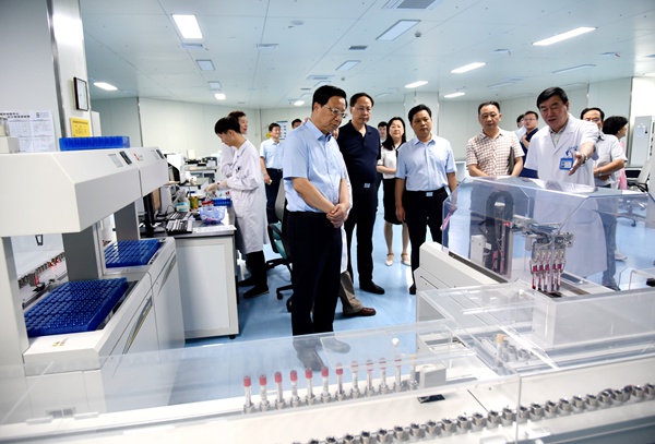 高体健一行先后来到省医疗保障局、省疾病预防控制中心,郑州市中牟县大孟镇卫生院、中牟县卫生防疫站及中牟县人民医院,漯河市中心医院、市疾病预防控制中心、市第二人民医院及万安医院,信阳市息县项店镇卫生院、县人民医院、县疾控中心,信阳市圣德医院、市疾病预防控制中心、平桥区妇幼保健院走访调研。详细了解全省医疗保障和疾病预防控制工作,市县疾病预防控制体系建设、妇幼保健、健康教育、慢病和癌症防治、疫苗存储以及应急物资存储,市级公立医院改革、生殖与遗传中心、出生缺陷预防、试管婴儿实验室、医养结合项目建设,县医共体建设、乡镇卫生院发展等方面的情况。高体健认真听取相关医疗卫生机构的汇报,并与管理和医护人员深入研讨交流。