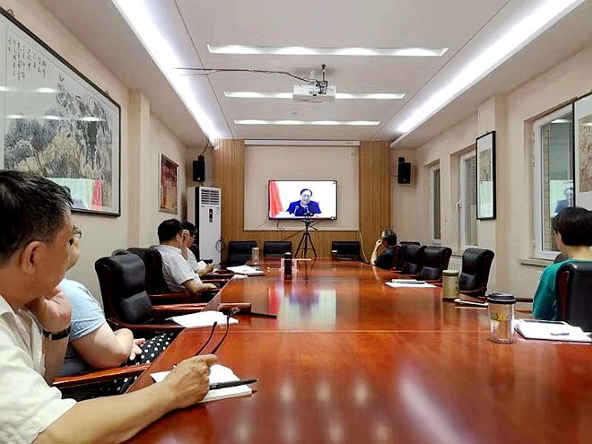 2019年7月18日下午,农工党天津市委会机关同志在机关会议室集体收看曾担任周恩来总理秘书的纪东同志主讲的“弘扬周总理风采,以初心和使命引领未来——在周总理身边工作八年的感悟”视频报告。这是天津市政协举办的2019年第三期春秋讲堂,通过网络视频直播,实现了资源共享,使大家深受教育。农工党天津市委会专职副主委兼秘书长王毅斋与机关同志一同收看了视频报告。