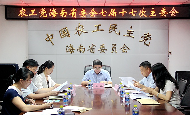 2019年7月12日,农工党海南省七届主任委员会第十七次会议和七届十一次常委会在海口召开,农工党中央副主席、农工党海南省委会主委、海南省副省长王路主持会议。
