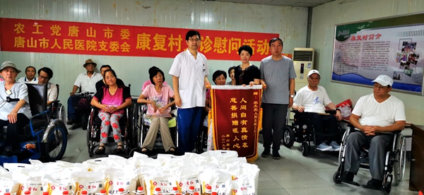 2019年7月25日,在纪念唐山抗震救灾四十三周年之际,农工党唐山市委会组织人民医院支委会党员到市康复村义诊慰问,送去价值一万余元的米面油等慰问品。市委会副主委贾敬苹、人民医院支委会主委甘建辉参加活动。