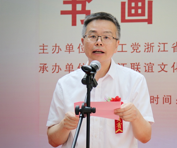 农工党浙江省委会主委罗建红、中共浙江省委统战部副部长王利月出席展览开幕式并致辞。农工党浙江省委会专职副主委田野主持开幕式,中国美院教授邓小鹏作为艺术家代表发言。西冷印社名誉副社长吕国璋,农工党中央画院副院长、中国美院教授常青,浙江联谊文化发展有限公司董事长詹其顺等嘉宾出席开幕式并剪彩。