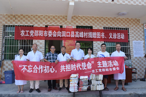 2019年8月13日,农工党邵阳市委会组织专家团队在洞口县大屋乡高峰村开展“不忘合作初心,共担时代使命”主题活动暨捐赠书籍、义诊活动。