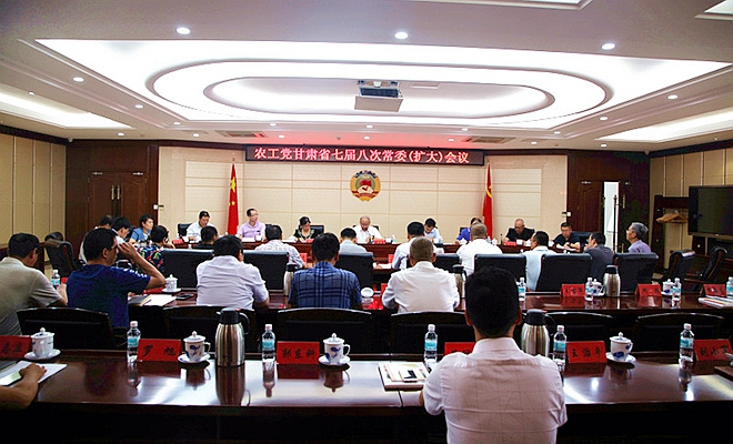 2019年8月13日下午,农工党甘肃省七届八次常委(扩大)在省政协东六楼会议室召开。甘肃省政协副主席、农工党甘肃省委会主委郭天康主持会议。省委会副主委李晓霞、张有成、刘兴荣,省委会二级巡视员马岱钧,特邀农工党中央委员、国务院国资委巡视组、白银市挂职副市长黄宝荣参加会议。省委会常委、在兰的省委会委员及各基层组织负责人、骨干党员等近50人参加会议。